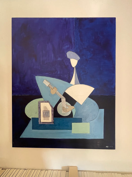 Musique - Sitariste en bleu sur fond vert, style cubiste