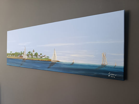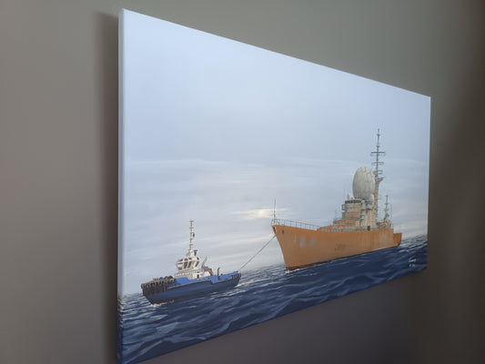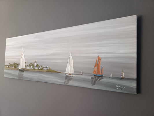 Ses toiles sont de véritables portraits de navires, mis en scène avec précision dans leurs environnements historiques et géographiques. Chaque embarcation, chaque détail est minutieusement documenté, capturant l’âme et l'identité unique de ces témoins du passé. Son œil d’architecte — discipline dans laquelle il a été formé — lui confère une rigueur graphique qui se traduit dans la finesse de ses compositions et la richesse de leurs détails.
