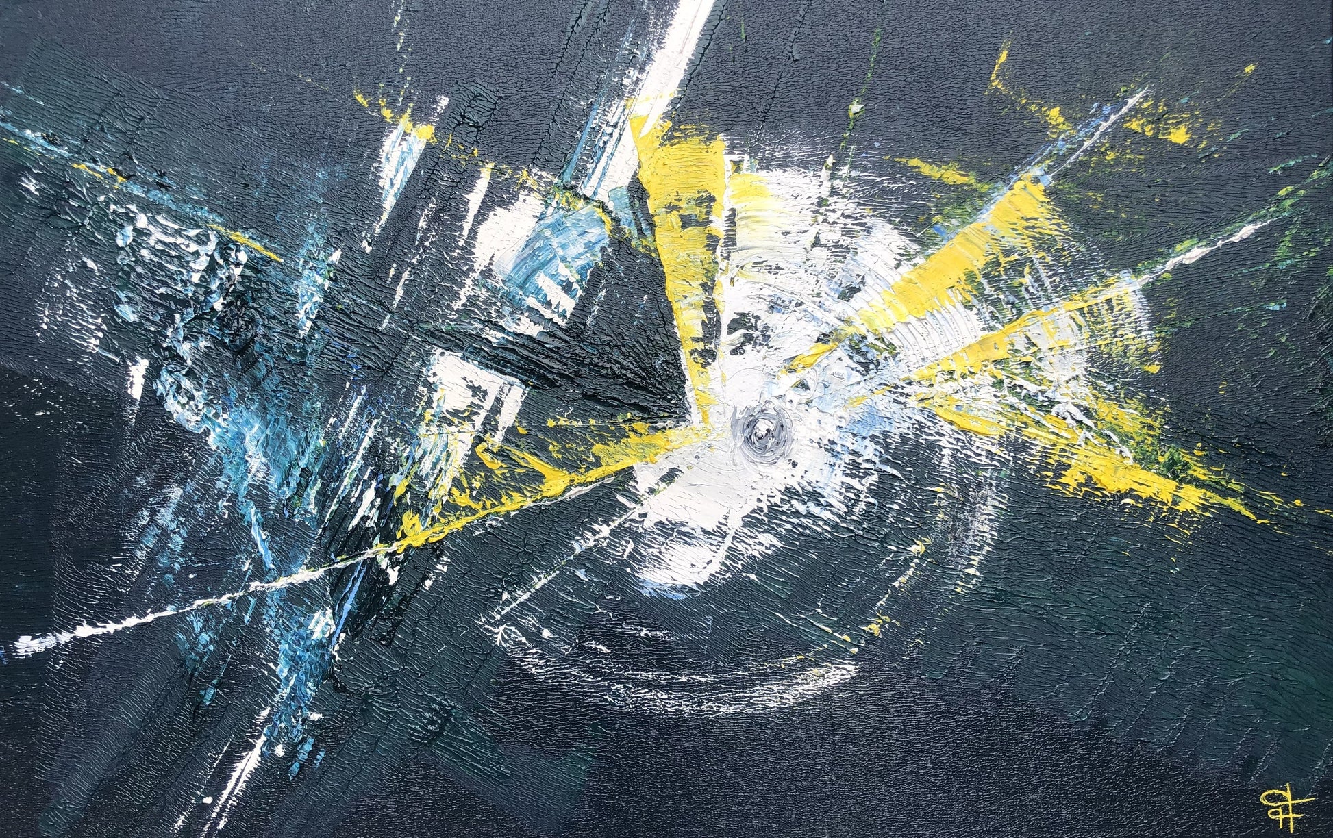 Canvas 40 x 40 cm, mixed technique (spray paint, Posca, stencil), June 2024