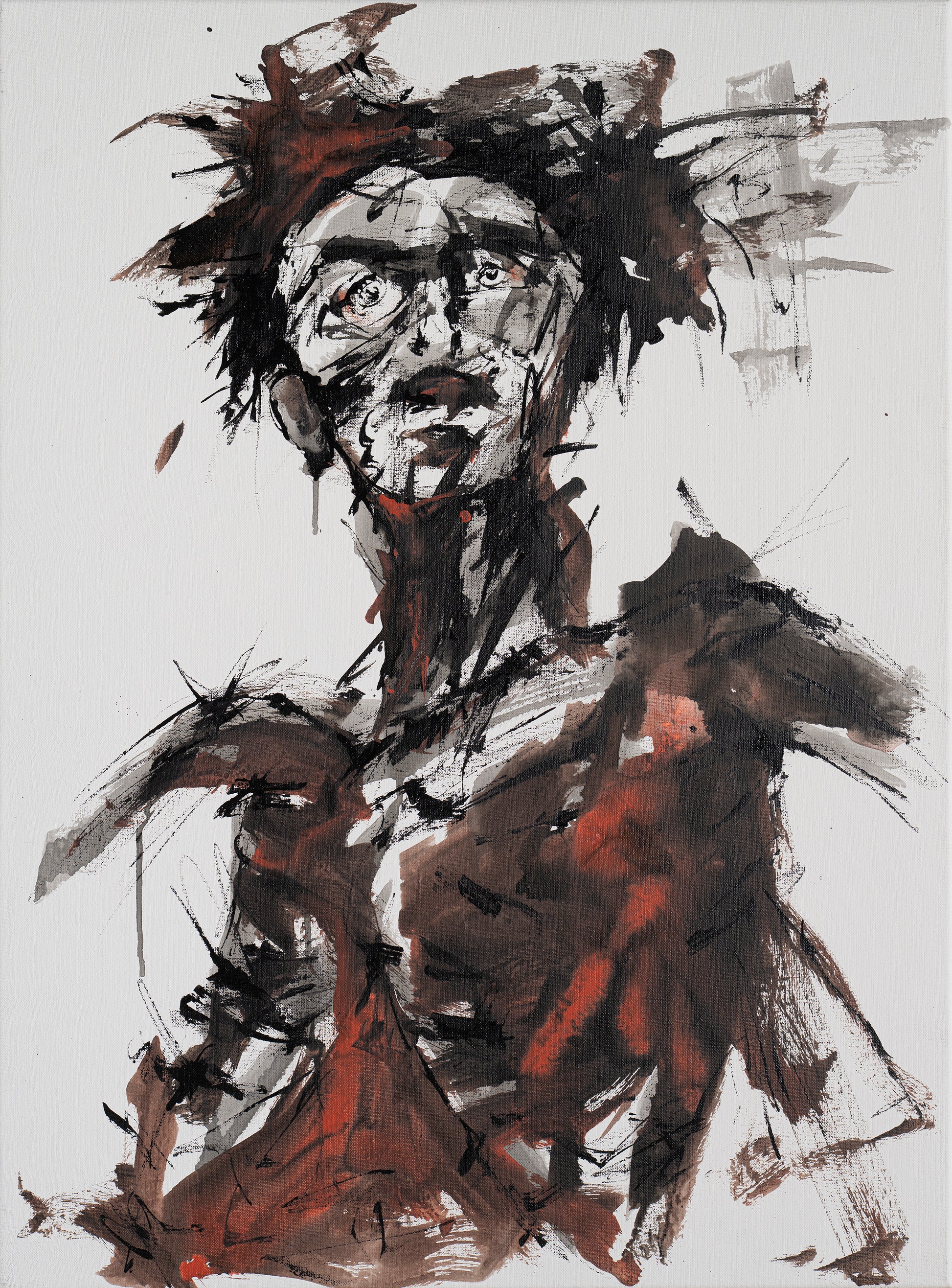 With his powerful and unstable features, Philippe Trefois touches on the essential: humanity, in its naked truth, without artifice. Each scratched line is a suspended emotion, each black or rusty shard is a wound, a memory, a trace.