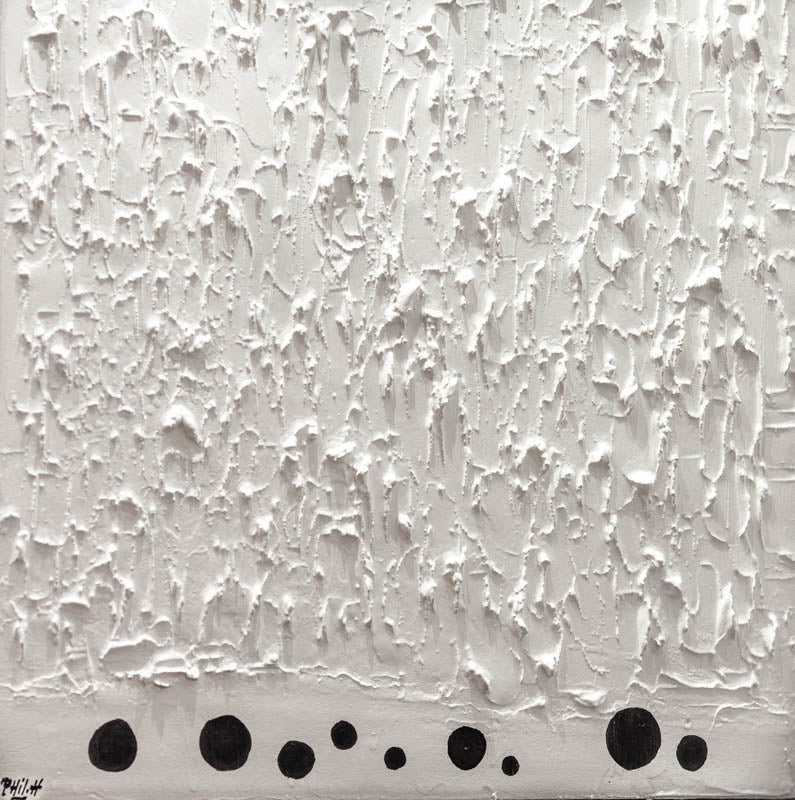 🔹 Technique: Spatula and black vinyl, spatula and bright yellow acrylic, white water-based lacquers and black glycerine, yellow spray, glossy varnish