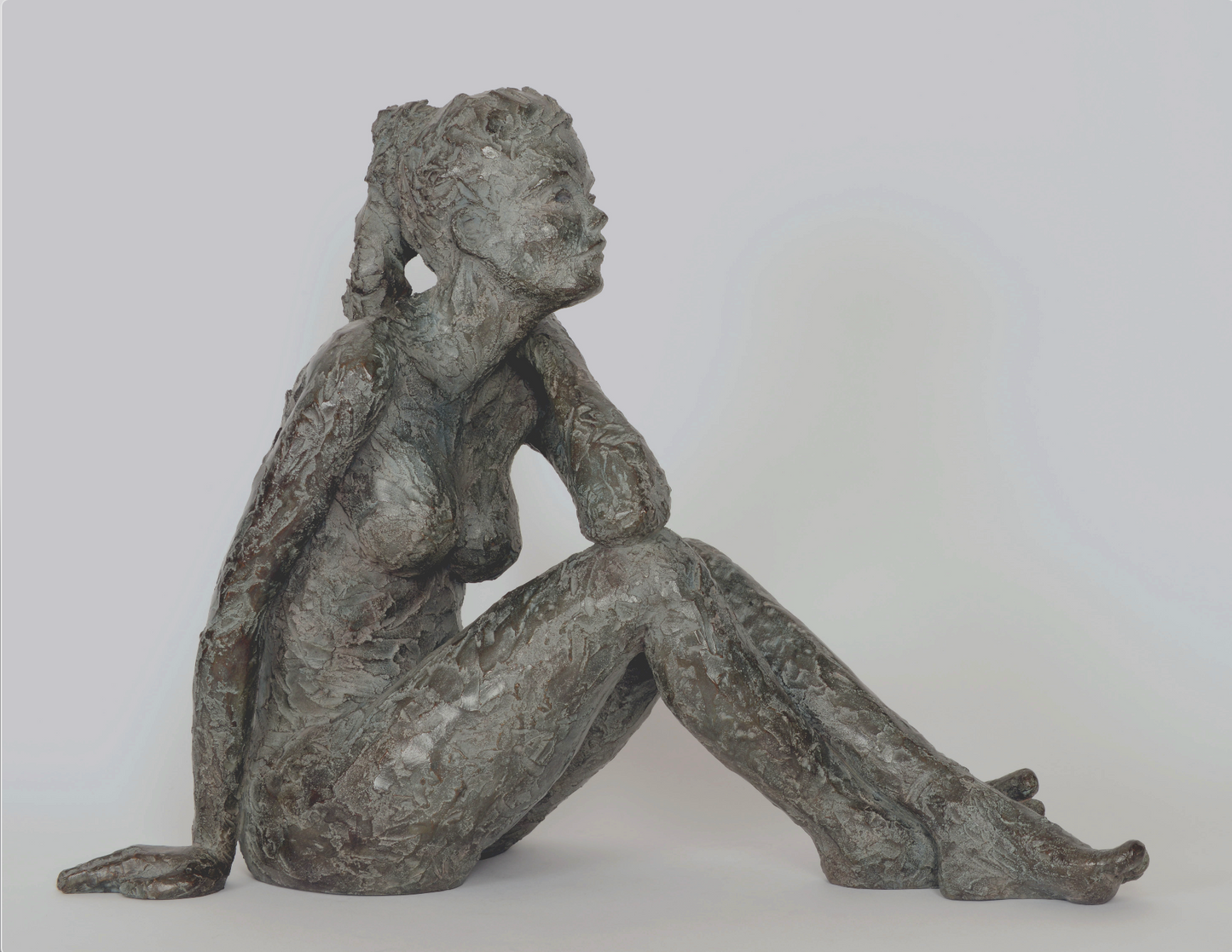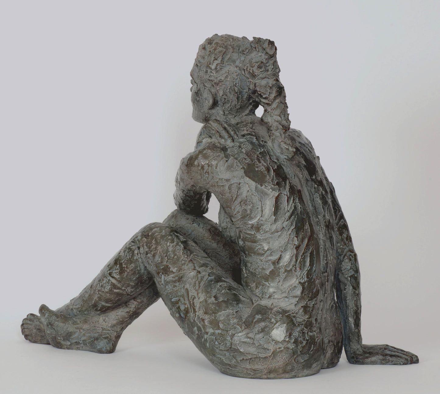 Marie by Catherine de Kerhor is a poetic celebration of femininity and inner reflection. In this captivating work, a female figure sits cross-legged, gazing into infinity. Her relaxed posture and delicate features express an introspective stillness, as if she were lost in thought or enjoying a moment of tranquility. Every curve and fold of the bronze tells a story of softness and strength, vulnerability and resilience.