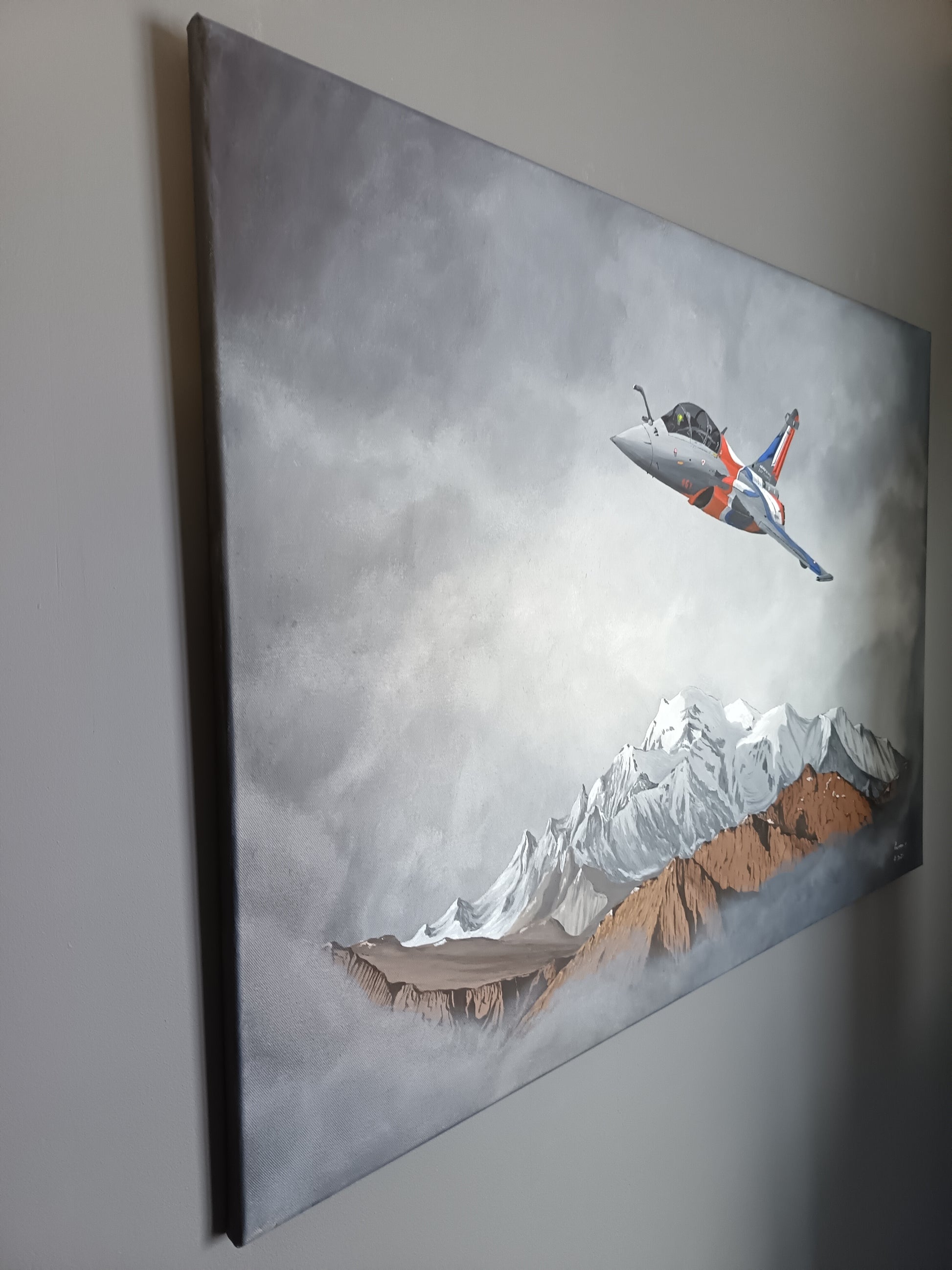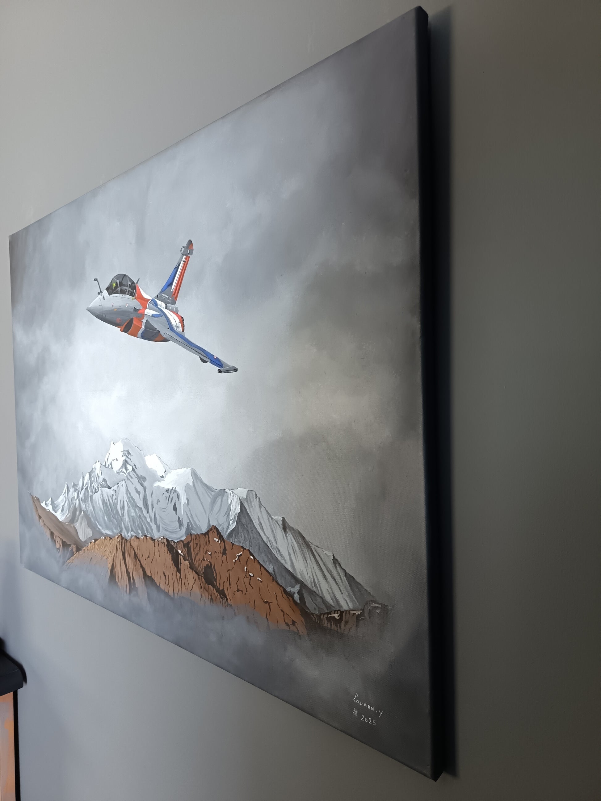 A powerful work that combines pictorial virtuosity and a vibrant homage to French wings – ideal for aeronautics enthusiasts and fans of committed contemporary art.