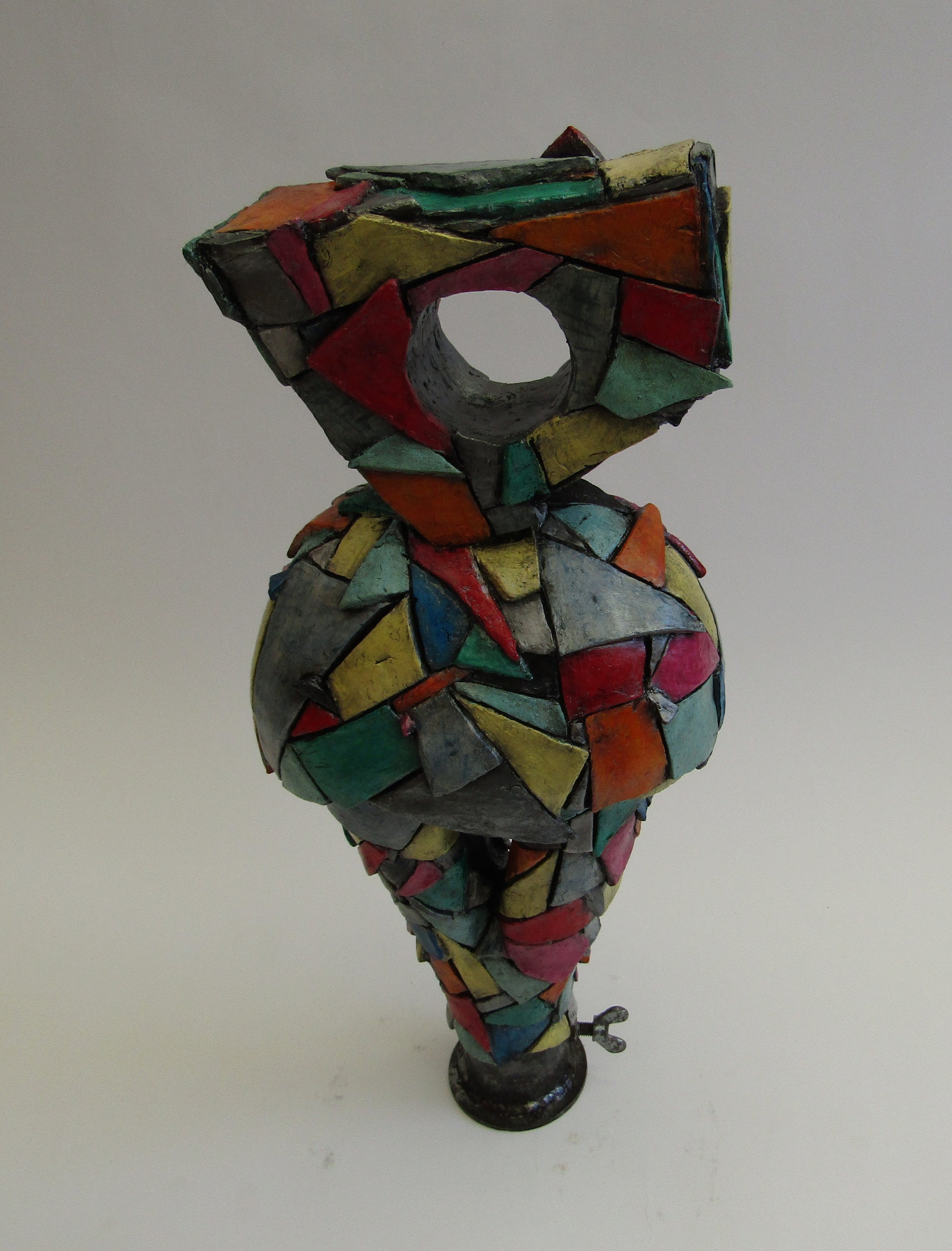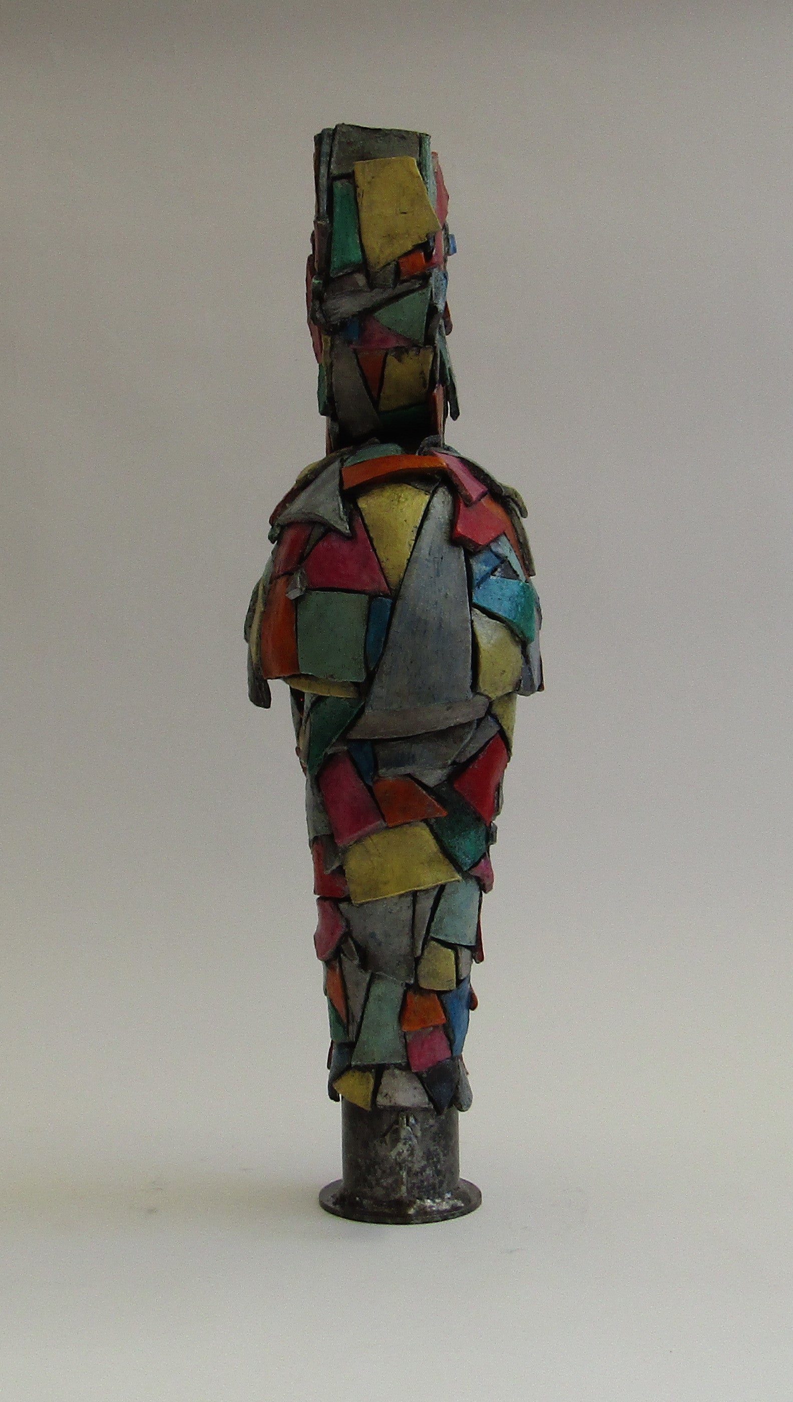 Sus formas alargadas, casi arcaicas, recuerdan las estatuas votivas de civilizaciones antiguas, mientras que su actitud, entre el abrazo y el retraimiento, cuestiona la protección y la resiliencia. ¿Es ella un baluarte o una sombra? ¿Un recuerdo o una advertencia?