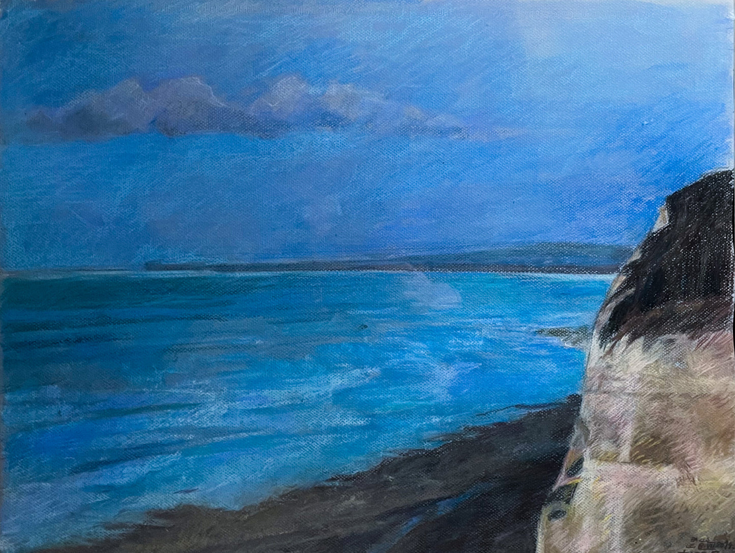 Avec "Horizons Sauvages", Anna Dek capture la majesté d’un littoral balayé par une lumière douce, où le bleu profond de la mer s’étend jusqu’à l’infini. Les falaises robustes, travaillées avec précision, ancrent la composition dans un paysage empreint de force et de sérénité. Ce tableau évoque la puissance tranquille de la nature, entre solitude et contemplation.