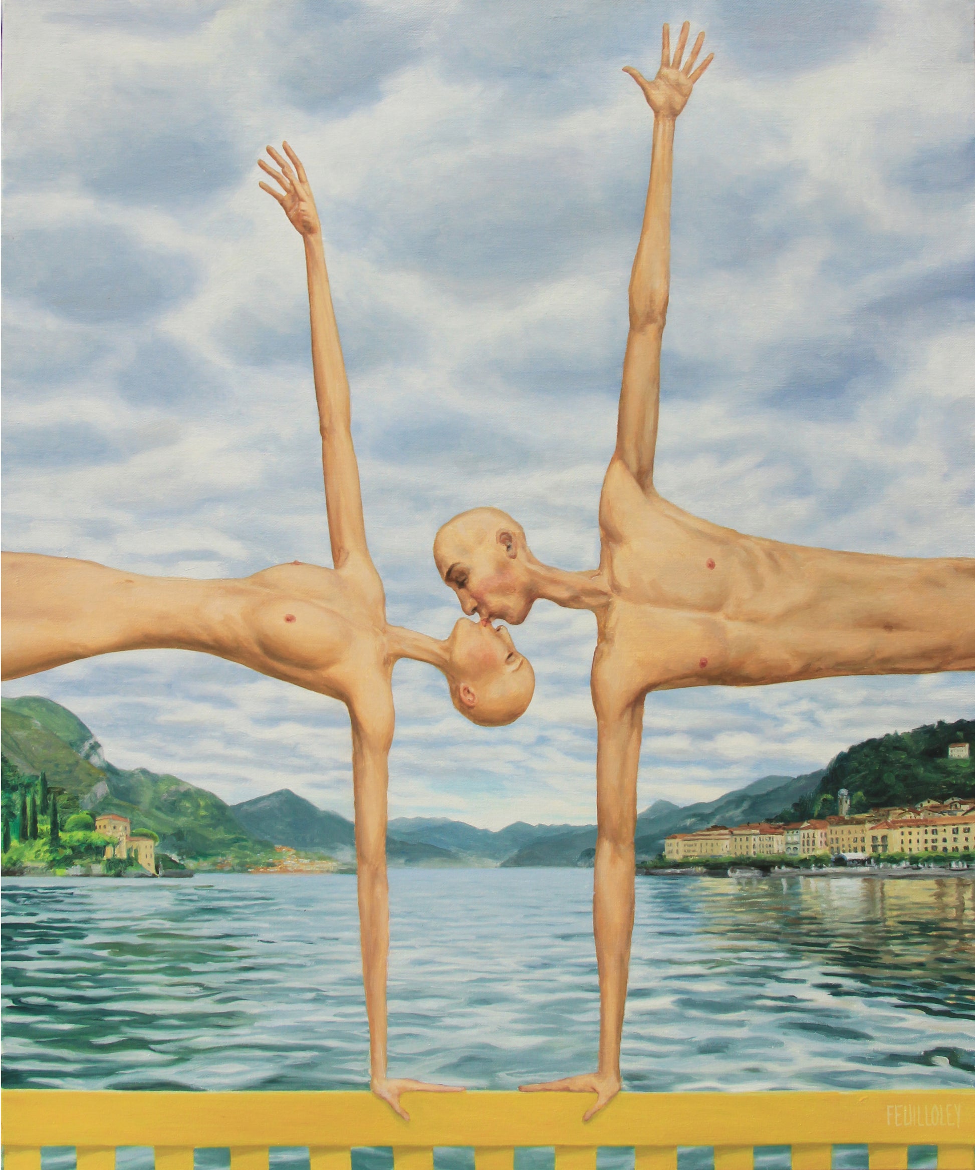 Entre rêve et mémoire, cette toile met en scène deux amoureux épanouis, suspendus hors du temps, flottant dans une apesanteur poétique. Leur présence délicate se déploie dans un décor italien évocateur : le lac de Côme et la ville emblématique de Bellagio, réinterprétés avec la sensibilité singulière de l’artiste.