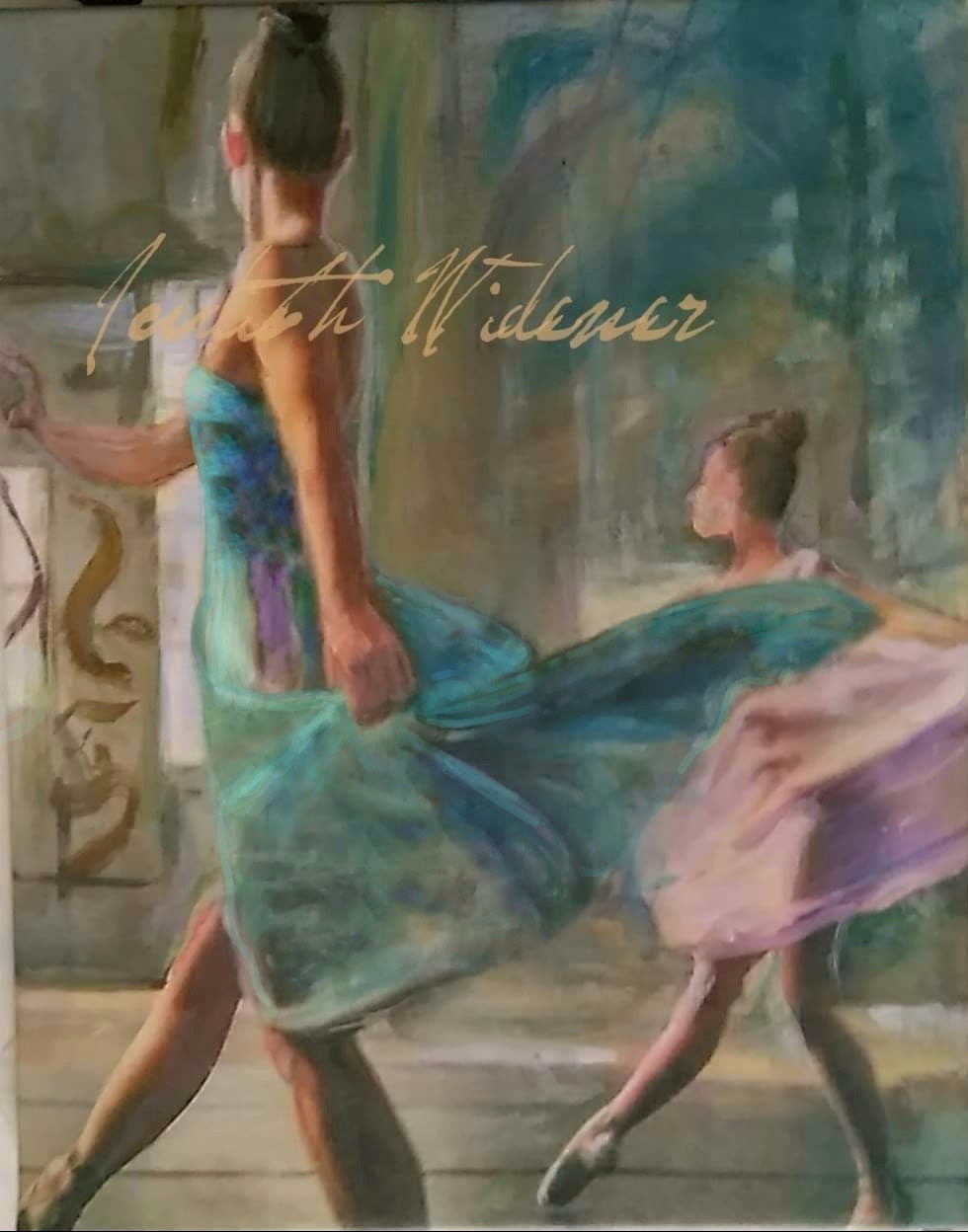 Dans cette scène délicate et gracieuse, Judy Widener capture un moment suspendu dans l’intimité d’une répétition de ballet. Les deux danseuses, en mouvement, semblent évoluer dans une atmosphère feutrée, baignée de lumière douce et de textures subtiles.