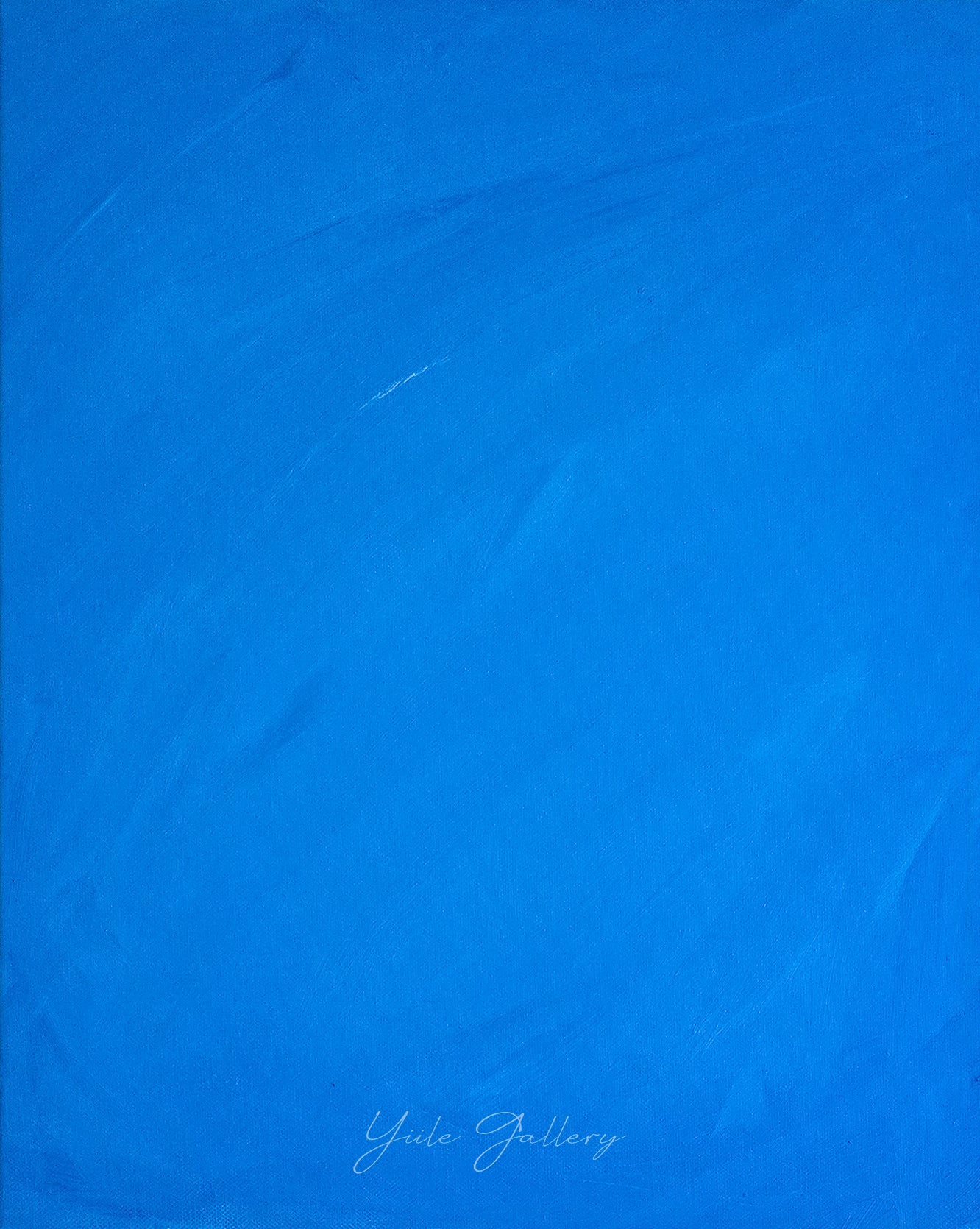 Incertitude explore cet espace intérieur où la logique vacille face aux tempêtes émotionnelles. Le bleu enveloppant domine la toile, dense et vibrant à la fois. Il n’est ni ciel ni mer : il est état d’âme. Il symbolise cette profondeur mentale où les pensées se brouillent, où les certitudes se dissolvent.