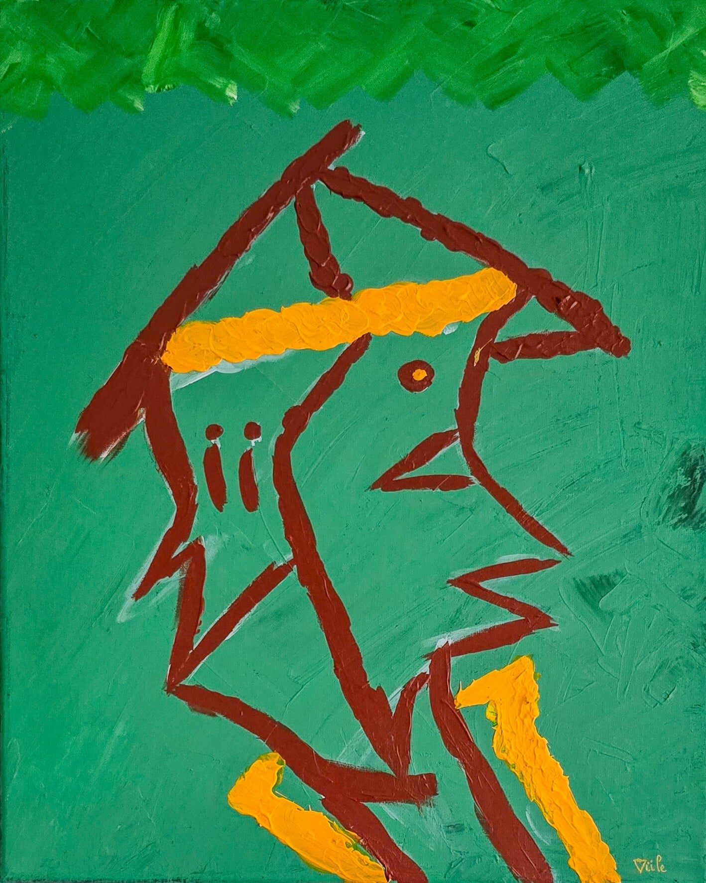 Le fond vert intense fait écho au pays du matcha, le Japon, tandis que les tons marron rappellent la force symbolique des masques africains. Cette rencontre visuelle entre cultures traduit un dialogue intérieur, une circulation d’énergies et d’influences.