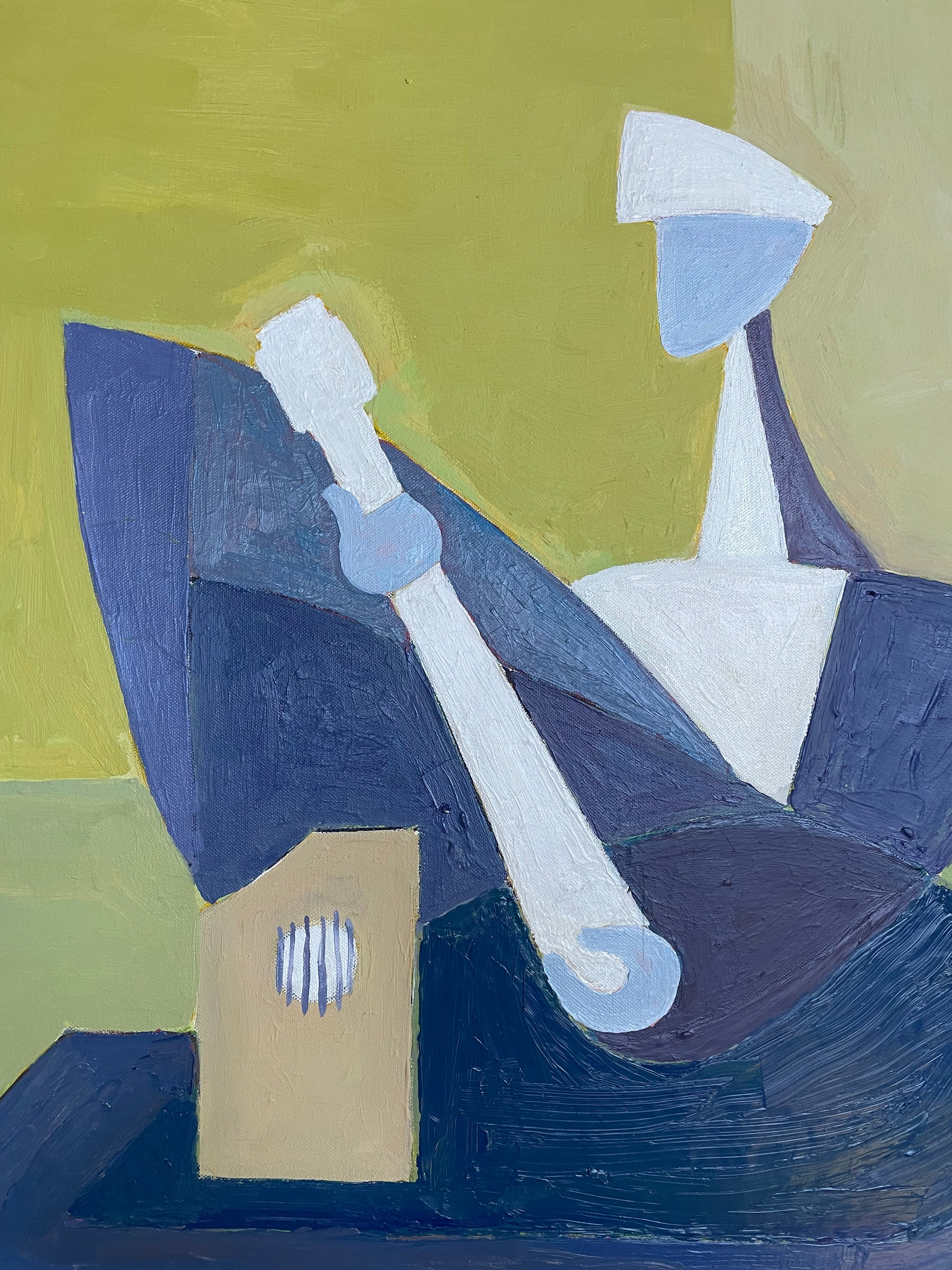 Musique - Sitariste en bleu sur fond vert, style cubiste - 2025 - Michel Testard