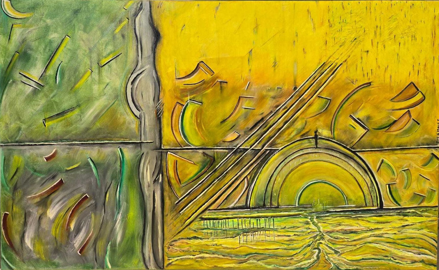 Les formes semi-abstraites, presque musicales, flottent comme des prières lancées dans l’éther. Les lignes convergentes créent un mouvement ascensionnel, une quête de transcendance. Ici, la couleur devient vibration, l’espace devient souffle.
