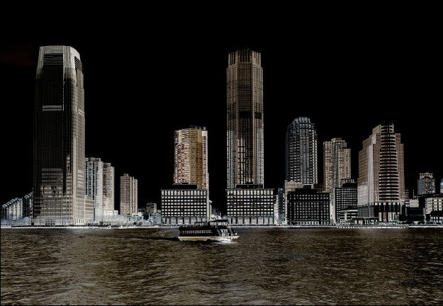 Les gratte-ciel se dressent dans une immobilité presque rituelle. Chaque tour semble autonome, détachée non seulement de notre regard, mais aussi des autres structures qui l’entourent. Elles ne dialoguent pas — elles coexistent. Masses verticales refermées sur leur propre silence, elles instaurent un ordre froid où l’échelle architecturale dépasse l’expérience humaine.