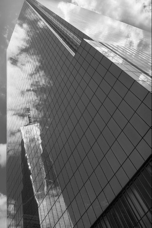 La façade vitrée ne regarde pas le ciel : elle l’absorbe. Les nuages, la lumière et les lignes de la ville se déposent à sa surface, s’y dédoublent, s’y dissolvent. L’architecture cesse d’être uniquement matière ; elle devient surface de projection, espace de bascule entre présence et apparition.