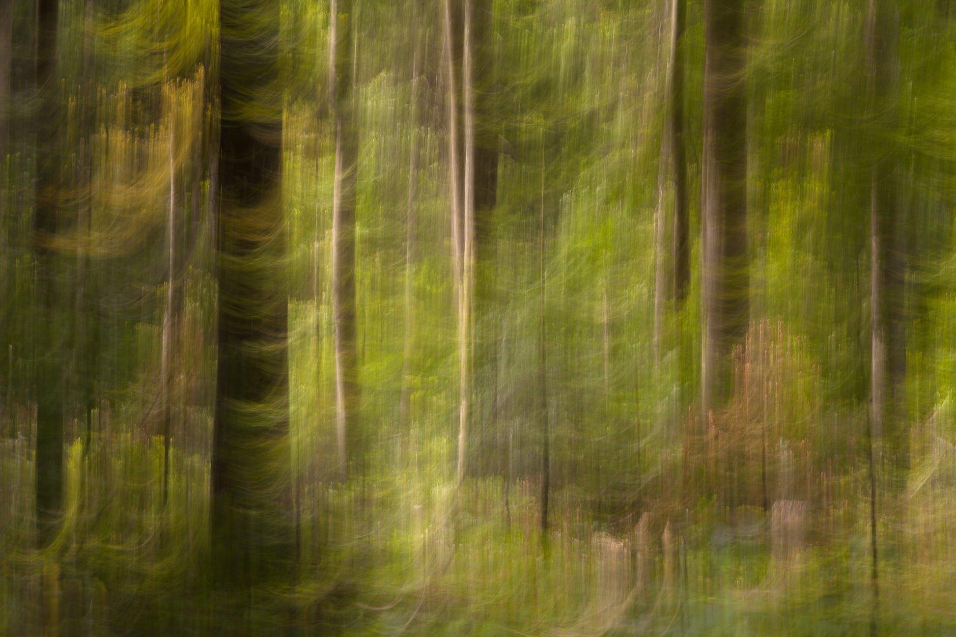 Dans Valöa, Vincent Favre explore la forêt comme un espace de transe et de résonance intérieure. Par un mouvement maîtrisé de l’appareil, il transforme les troncs et les feuillages en traits lumineux, presque vibratoires, créant une vision à mi-chemin entre le réel et le rêve. Les nuances de vert, de brun et d’or s’entremêlent comme des pulsations, évoquant la respiration profonde des bois.