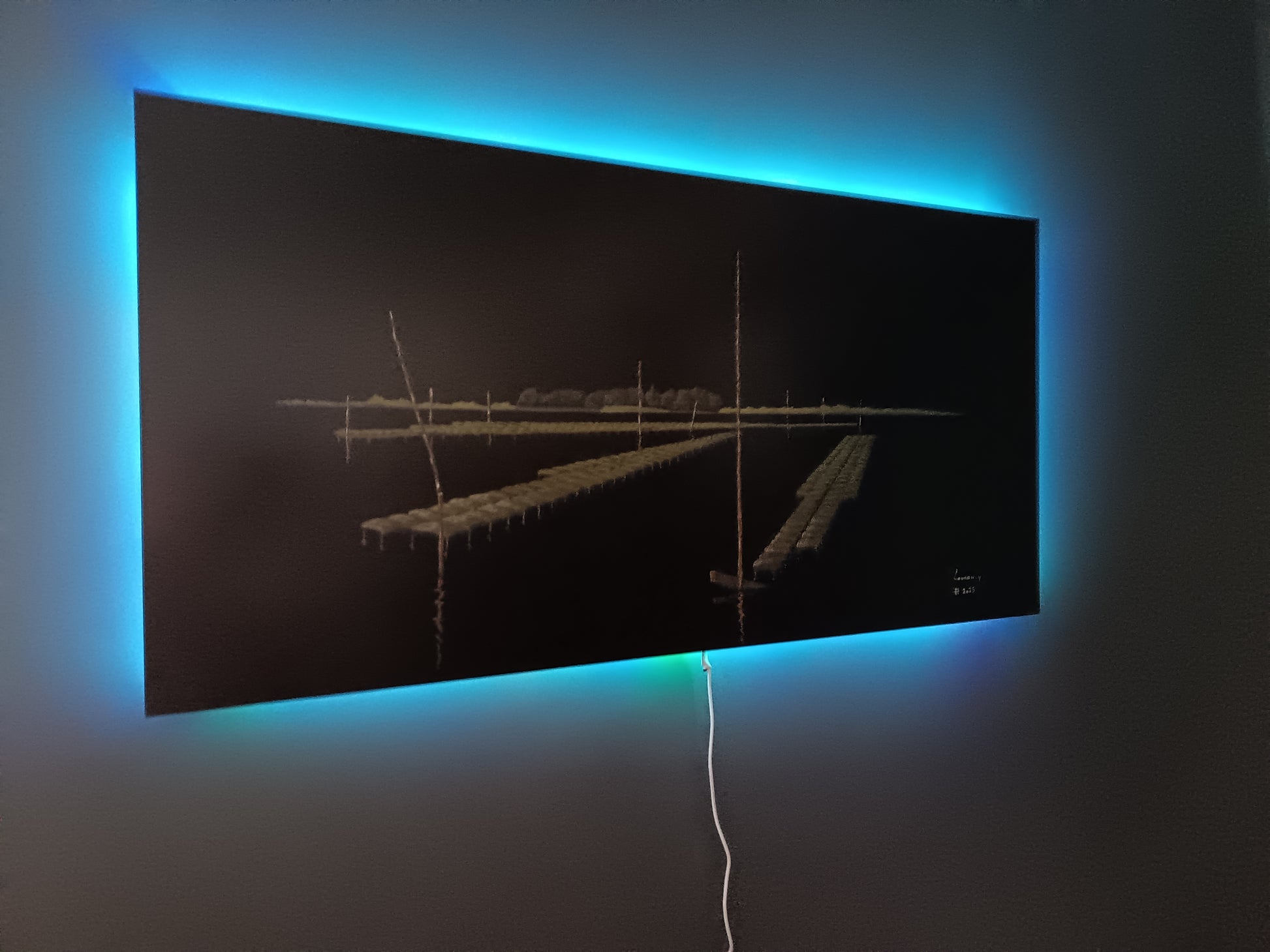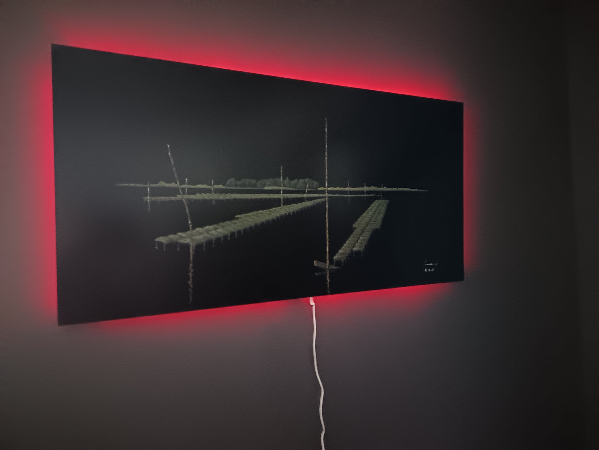 🔹 Technique : Acrylique sur plaque aluminium laquée rétro éclairage du mur par télécommande